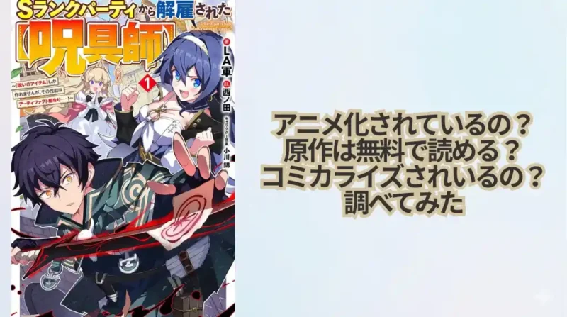 アニメ化は決定しているのか?このページでは、話題の異世界ファンタジー「Sランクパーティから解雇された【呪具師】」について、アニメ化の有無、原作を無料で読めるか、コミカライズの状況、そしてアニメがある場合の無料で観る方法や激安で観る手段まで... -