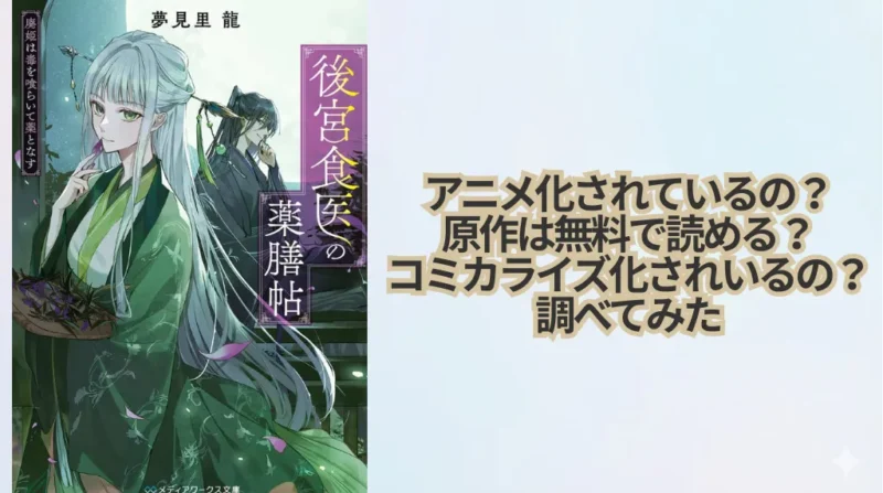 「後宮食医の薬膳帖はアニメ化されている?」「原作は無料で読めるの?」 そんな疑問を感じて、このページにたどり着いた方も多いのではないでしょうか。 中華風の後宮を舞台に、医療×薬膳×謎解きという少し珍しい切り口で描かれる後宮食医の薬膳帖は、じ... -